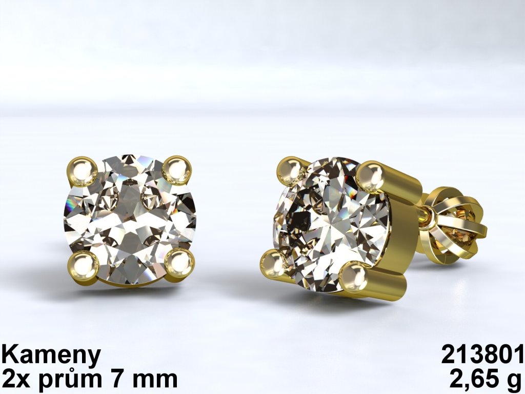 Au 585/1000 Zlaté náušnice s kameny 7mm